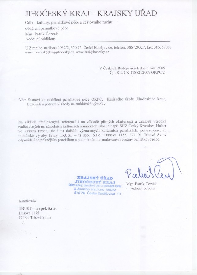 Výroba a repase památkově chráněných a historických výrobků - špaletová okna, repliky dveří, stropů - stavební truhlářství - nábytková výroba, zpracování návrhů - zakázková výroba, truhlářství.