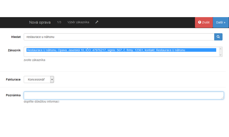 Adresa provozovny