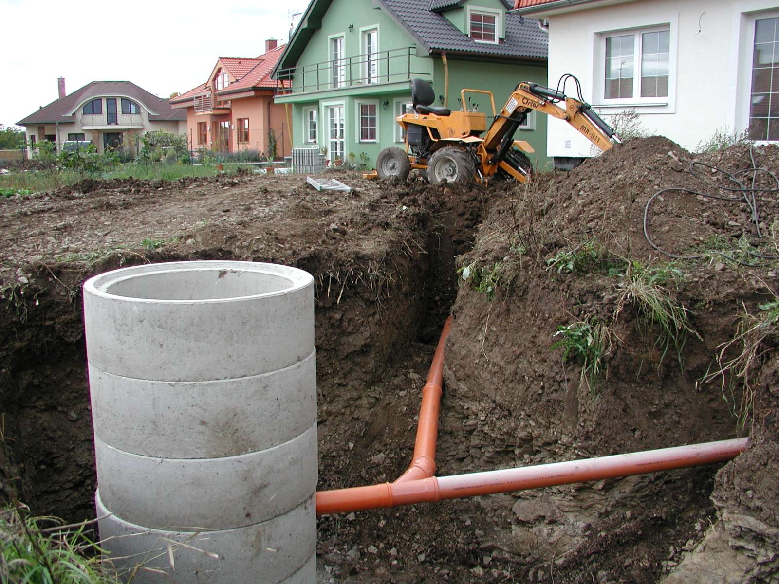 Zemní a výkopové práce na kanalizaci a vodovod.
