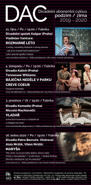 Středisko kulturních služeb: - zajišťuje nejširší kulturní nabídku kulturních pořadů: - divadelní abonentní cykly - koncerty Kruhu přátel hudby - zábavné pořady a koncerty - divadelní cykly pro děti a...