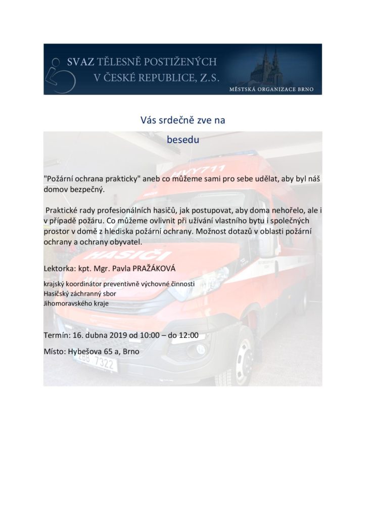 Svaz tělesně postižených v České republice z. s. městská organizace Brno je nestátní nezisková organizace, která má za cíl všestrannou podporu svých členů a dalších tělesně postižených občanů bez ohle...