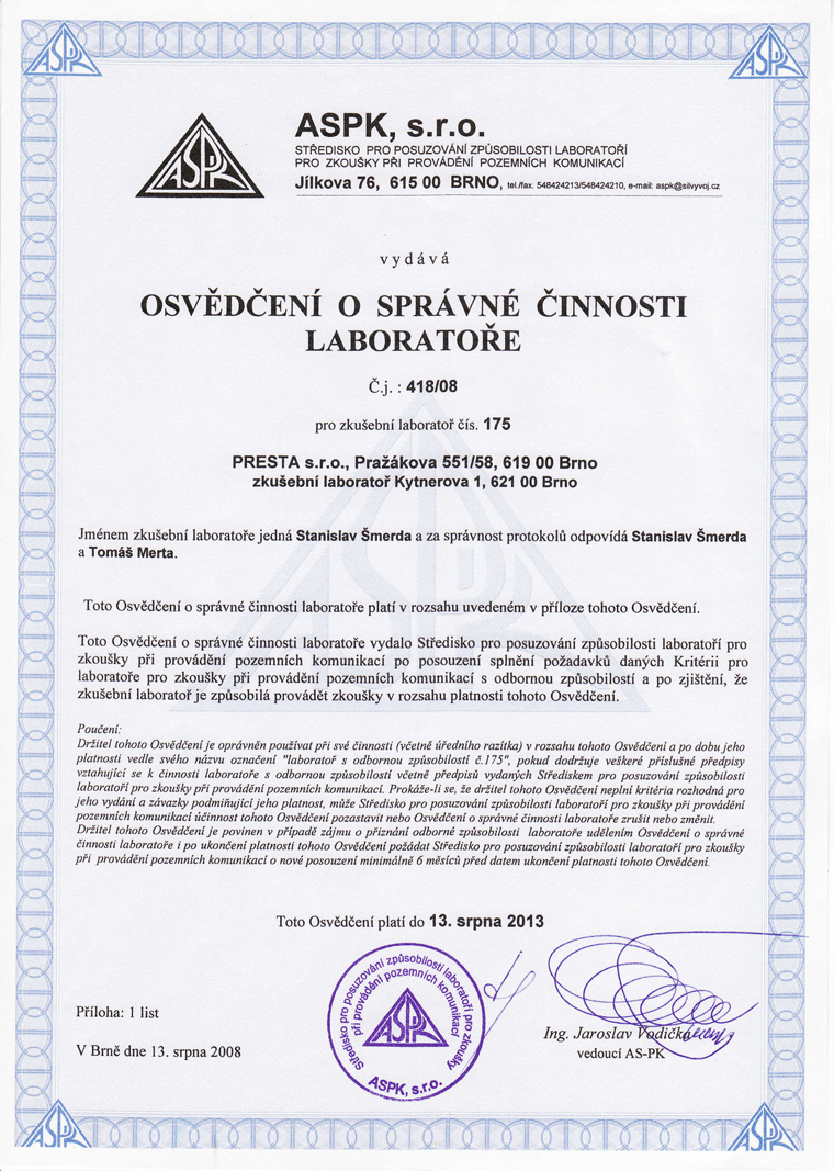 Služby: - zátěžové zkoušky komunikací - kamerové zkoušky kanalizace - čištění kanalizace tlakovým vozem - zkoušky těsnosti kanalizace.