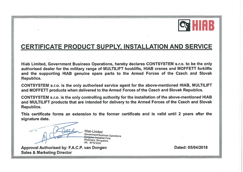 Společnost CONTSYSTEM je dodavatelem silniční manipulační techniky a autorizovaným střediskem pro provádění montáží a kompletního servisu hydraulické manipulační techniky značky HIAB a STEELBRO, včetn...