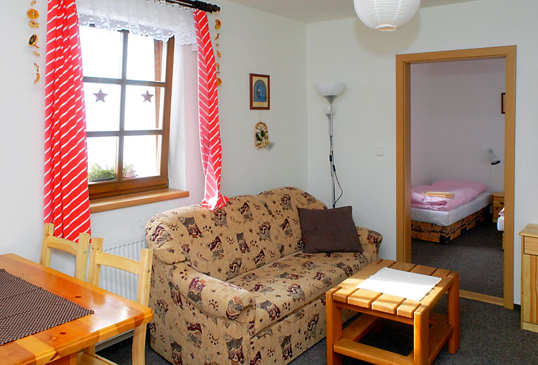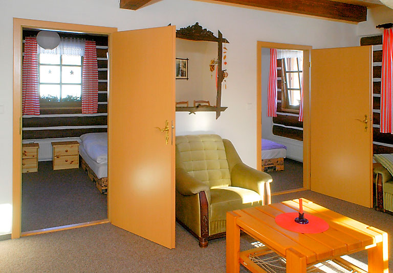 Rodinný penzion - 3 apartmány pro 4 osoby - připojení k internetu - houpačky pro děti - bazén se solárním ohřevem - venkovní posezení s ohništěm - společenská místnost s...