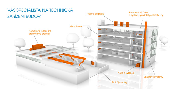 Zaměřujeme se na: - vzduchotechniku - chlazení - ústřední topení - zdravotní technika - měření a regulace - zařízení odvodu tepla a kouře - solární systémy - tepelná čerpadla.
