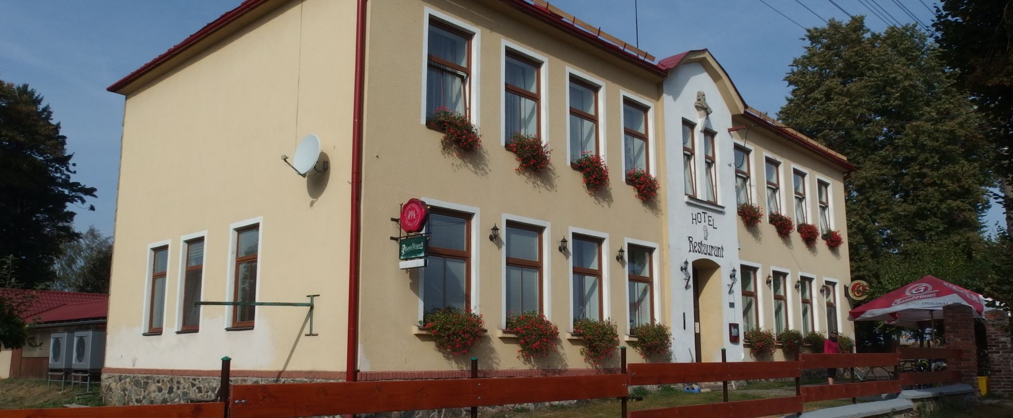Ubytování ve dvou, tří i čtyřlůžkových pokojích s koupelnou, WC, televizí.Stylová restaurace s venkovní terasou, gril.Možnost pořádání rodinných oslav a firemních večírků.K dispozici je tenisový kurt.