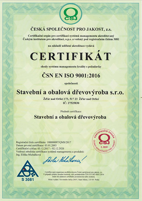 Dřevovýroba - dřevěné bedny, palety, obaly, podlášky - stavební řezivo, hranoly, latě - sušení a tepelné ošetření.