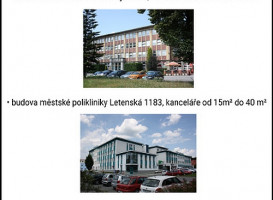 Pronájem: - kancelářské prostory - prostory pro podnikání ve zdravotnictví - správa nemovitostí.