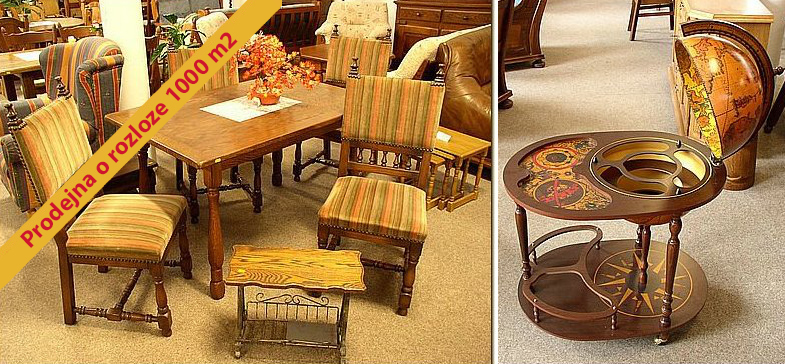 Prodej: - rustikální nábytek - stylový nábytek - sedací nábytek - skříně, komody - obývací a předsíňové stěny.