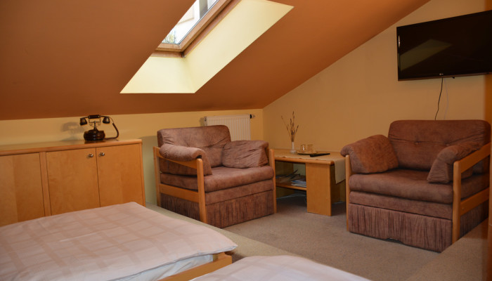 Hotel, ubytování: - 4 x 2 dvoulůžkové pokoje (možnost přistýlky) - 2x apartmán - pokoje jsou vybaveny sociálním zařízením, televizí.Restaurace: - zahradní restaurace (květen - září) Po - Ne 12 - 24 -...