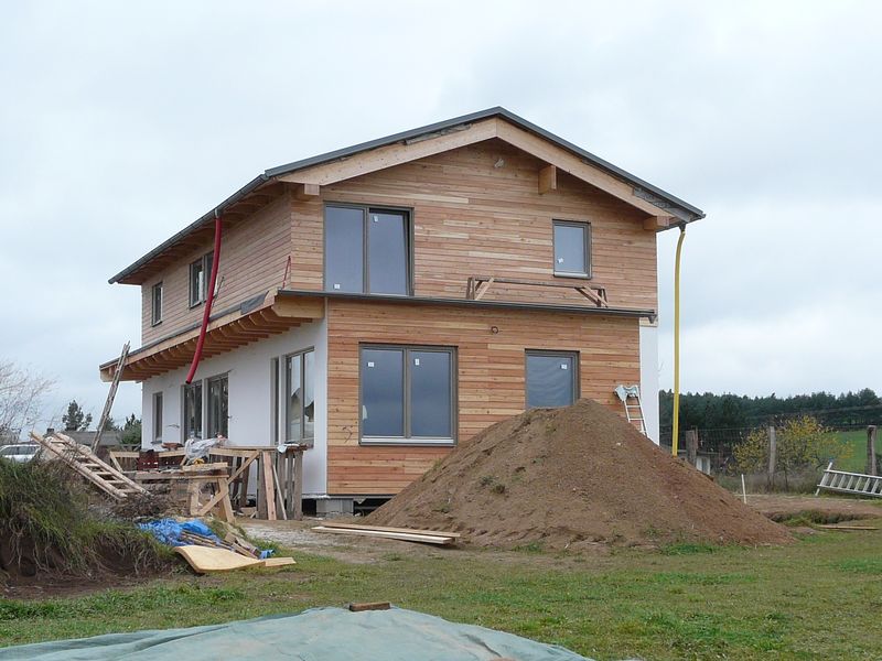 Stavební činnost - svépomocná stavení - domy z přírodních materiálů (sláma, hlína).