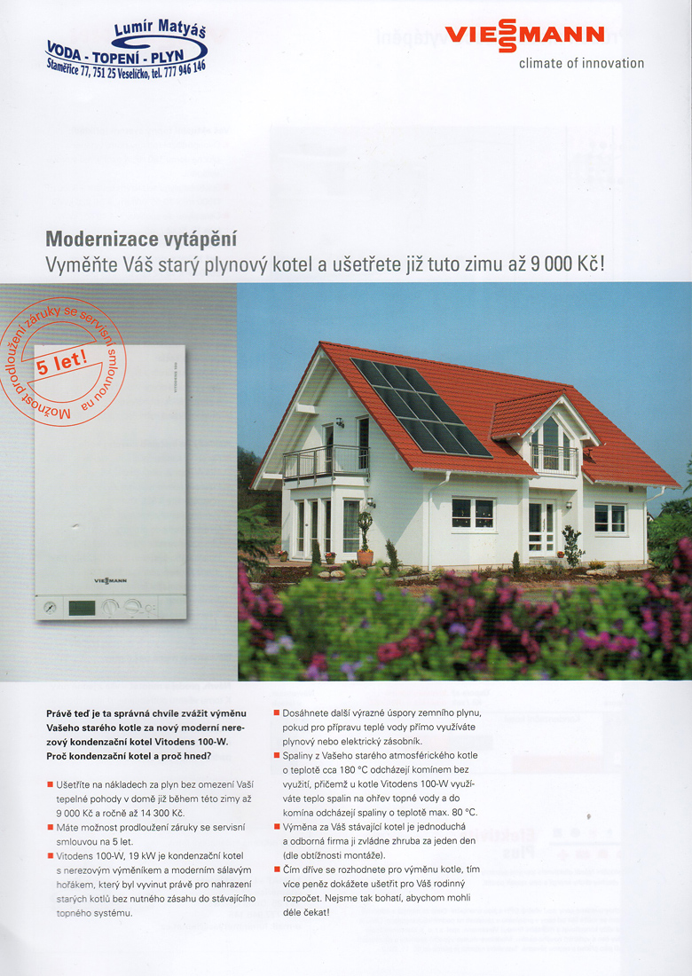 Montáž, rekonstrukce, revize a plynofikace: - kotelny montáž - domovní a průmyslové plynovodyrevize - tlakové nádobyMontáž: - ekvitermní regulacePlynoinstalační práceMontáž: - zařízení pro solární ohř...