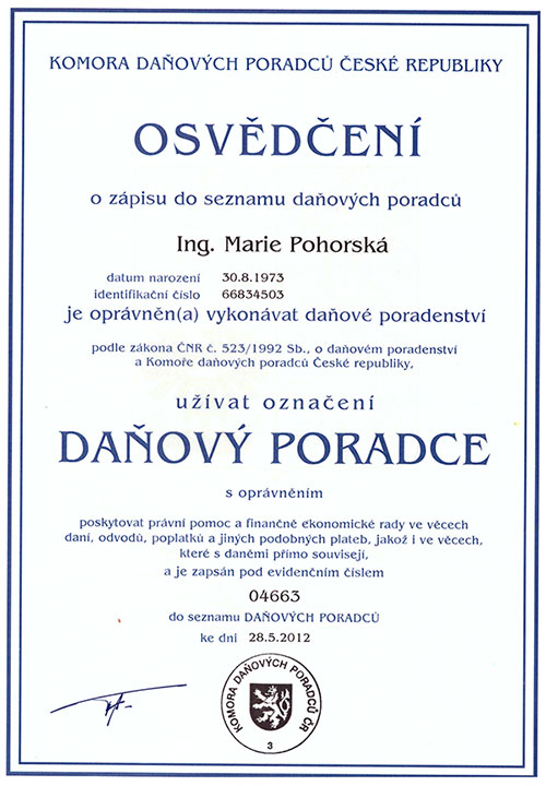 Daňové poradenství, činnost účetních poradců, vedení účetnictví, vedení daňové evidence, výuka jazyka - německý jazyk