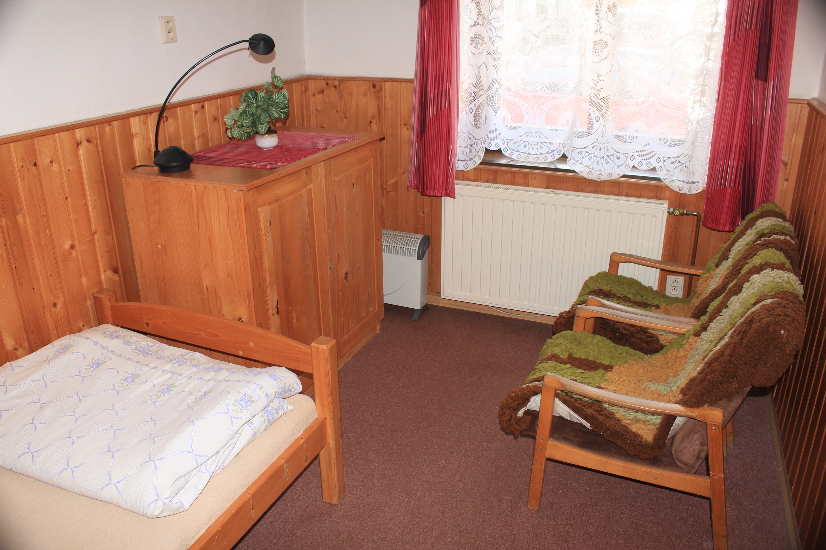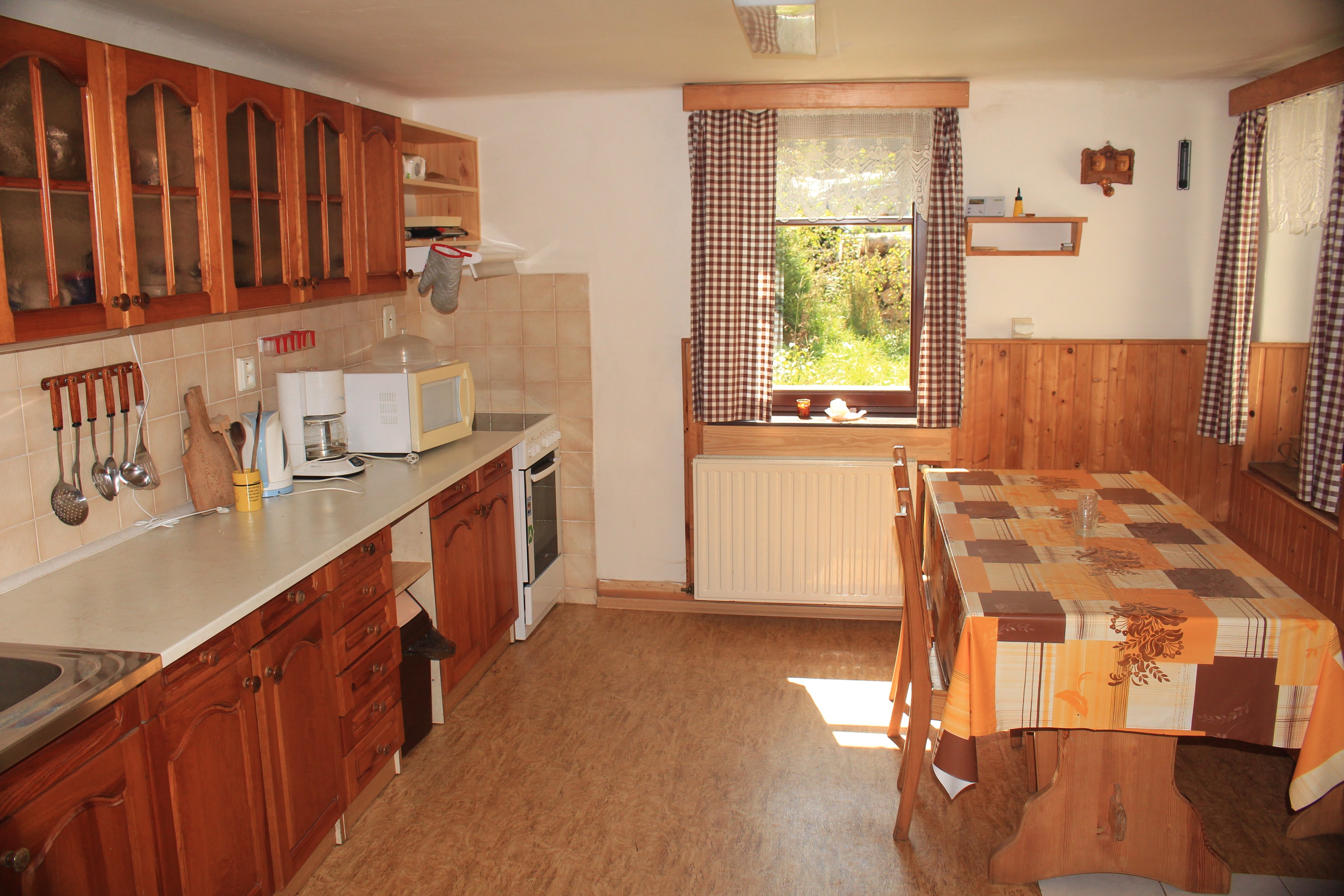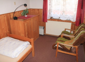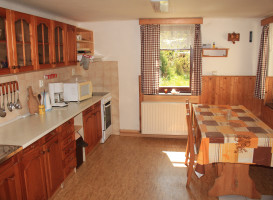 Chalupa - rozvod teplé a studené vody - vytápění zajišťují krbová kamna a elektrické přímotop - k dispozici lůžkoviny