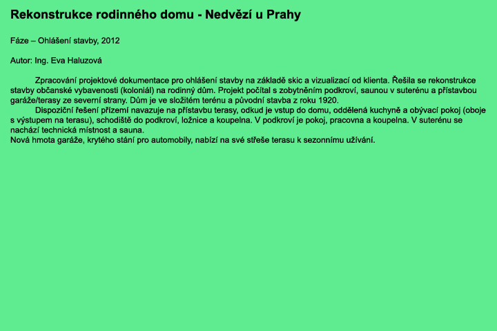 Ateliér EH - zpracování architektonických studií a návrhů stavby - design atypických prvků interiérů.