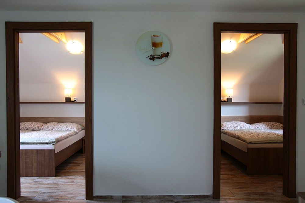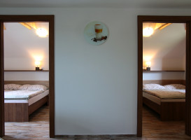 Penzion - 2 třílůžkové pokoje - 1 dvoulůžkový pokoj s možností dvou přistýlek - pokoje mají vlastní sociální zařízení - společenská místnost s TV.