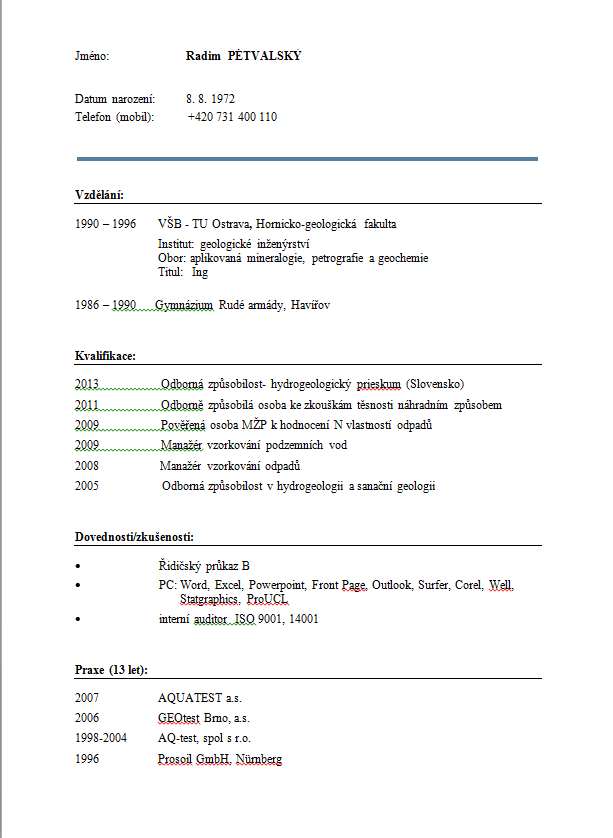 Služby - hydrologie - sanace znečištění - hodnocení nebezpečných vlastností odpadů - zkoušky těsnosti náhradním způsobem.