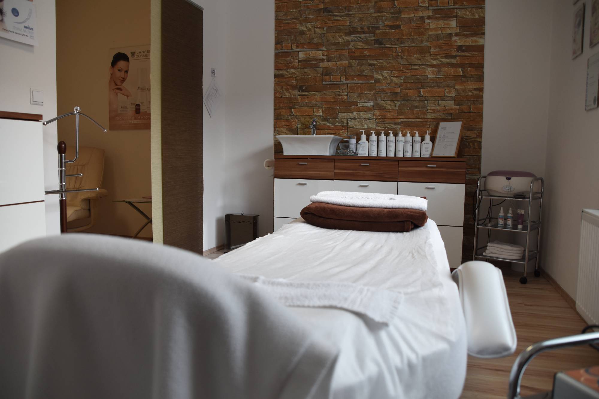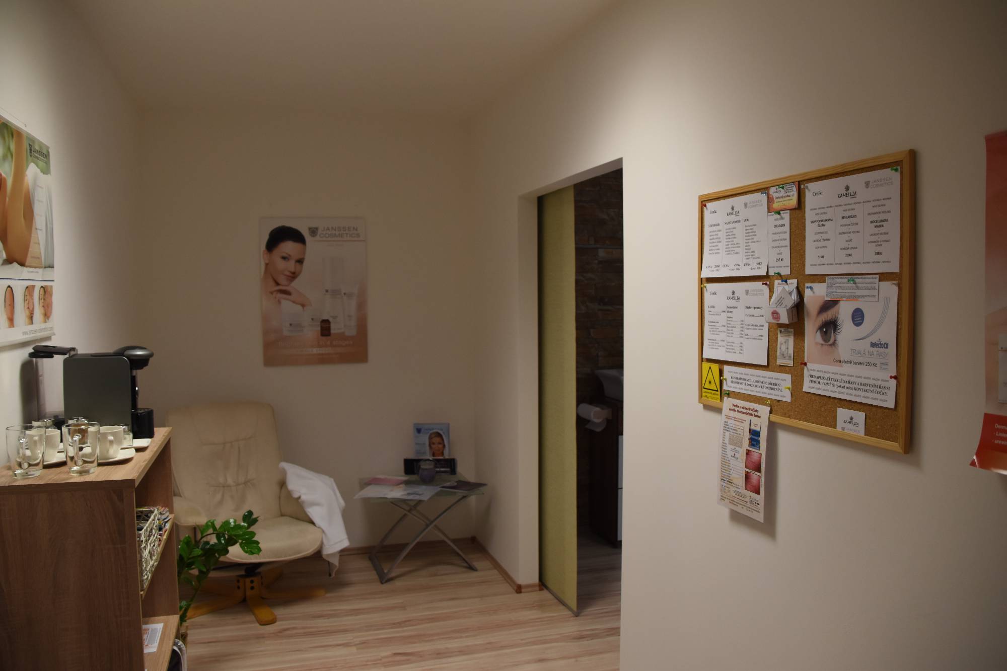 Kosmetické služby: - ošetření pleti - povrchové, hluboké čištění - masáž - séra - masky - depilace - trvalá na řasy - laserové ošetření.Prodej kosmetiky: - kosmetické přípravky značky Janssen.